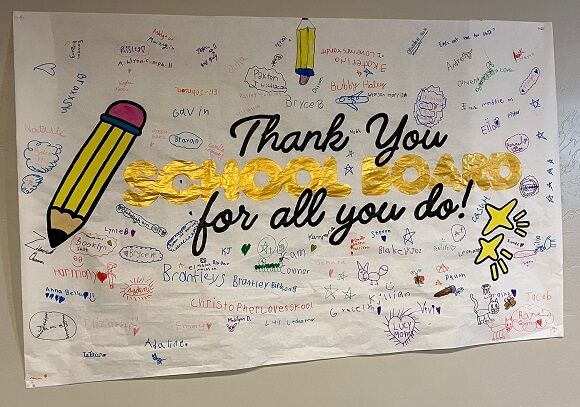 It was also our Board Appreciation Month so the Elementary students made a Signature poster for the members.